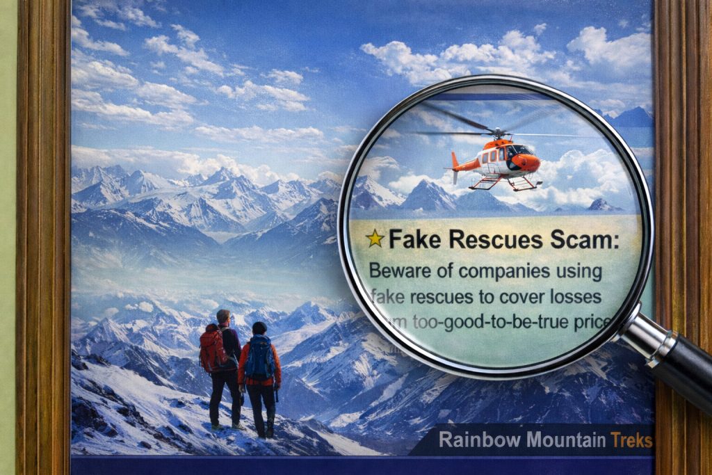 A helicopter rescue scam refers to documented cases where trekkers were evacuated by helicopter without genuine medical necessity, often for mild or manageable conditions, so that insurance claims could be generated for financial gain. These cases involved misuse of emergency classifications rather than fake helicopters, and investigations showed the issue was systemic abuse by a small number of unethical actors, not the entire trekking industry.
